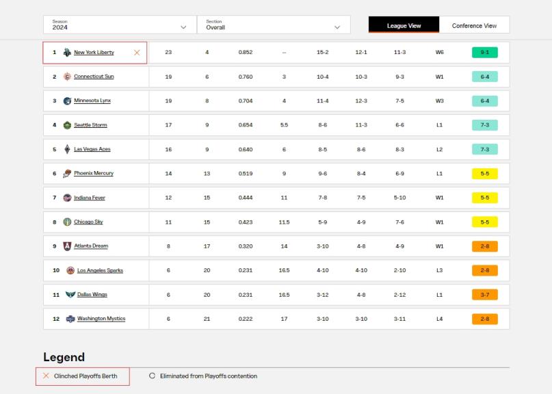 自由人本赛季至今的战绩是23胜4负,这也是她们队史开季前27场比赛的最佳战绩。